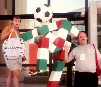 O 'Ciao' foi o mascote da Copa de 1990, na Itália. Na foto, Milton e Nilson César