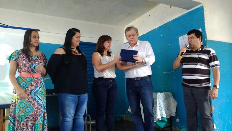 Em seguida, o jornalista recebeu uma placa de agradecimento do corpo diretivo da Escola Estadual Cesário Coimbra.