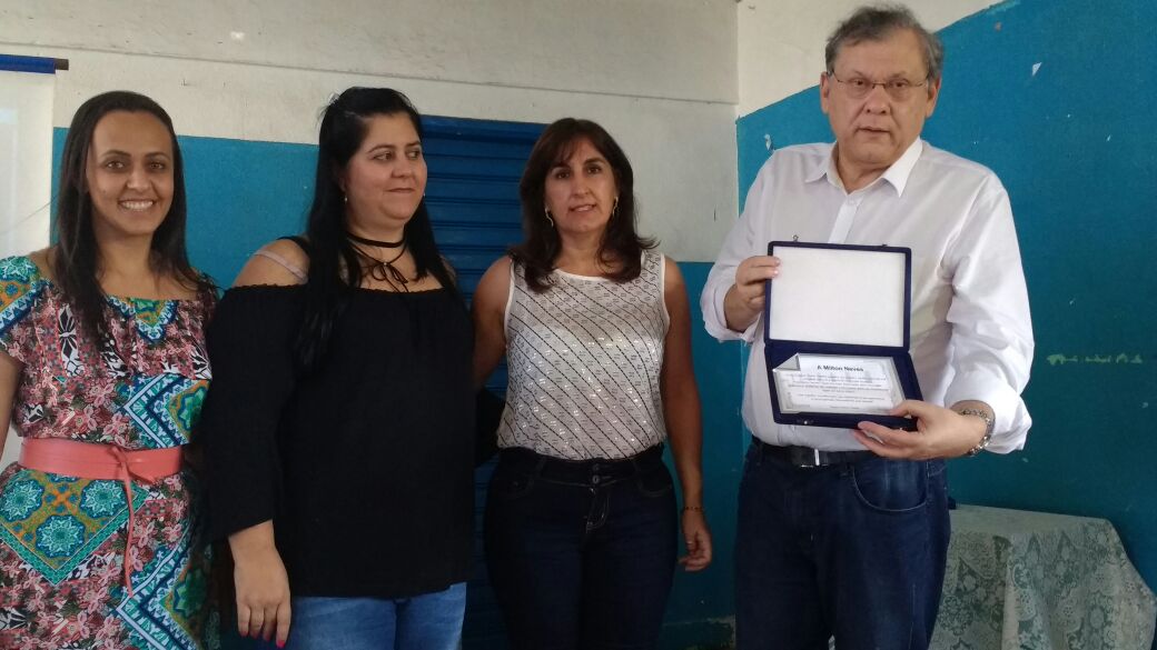Muita emoção em 2 de dezembro de 2016 na Escola Estadual Cesário Coimbra, em Muzambinho-MG, ocasião em que o jornalista e publicitário Milton Neves foi homenageado na escola em que estudou na infância.