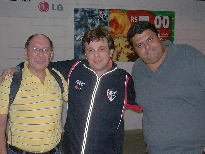 Na festa da Rádio Bandeirantes, no Pacaembu, em 03 de maio de 2010, ao lado de João Paulo de Jesus Lopes, dirigente são-paulino. Foto: Marcos Júnior/ Portal TT
