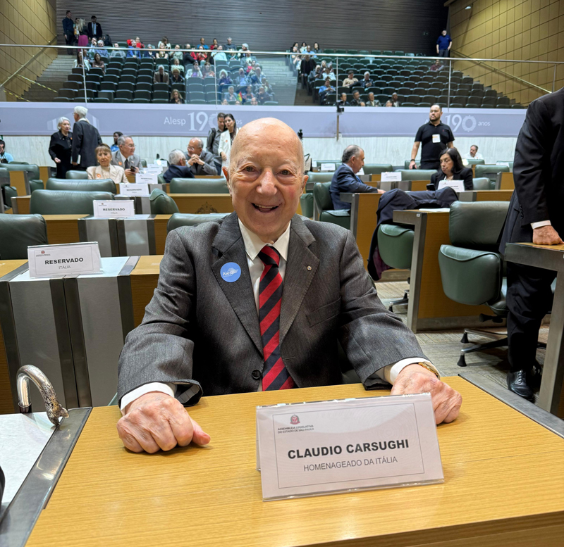 Exatamente no dia em que completou 93 anos de idade, a última segunda-feira (13), o jornalista e engenheiro Claudio Carsughi foi um dos homenageados na cerimônia solene realizada na Assembleia Legislativa de São Paulo, promovida pelo CONSCRE (Conselho Estadual Parlamentar das Comunidades de Raízes e Culturas Estrangeiras).