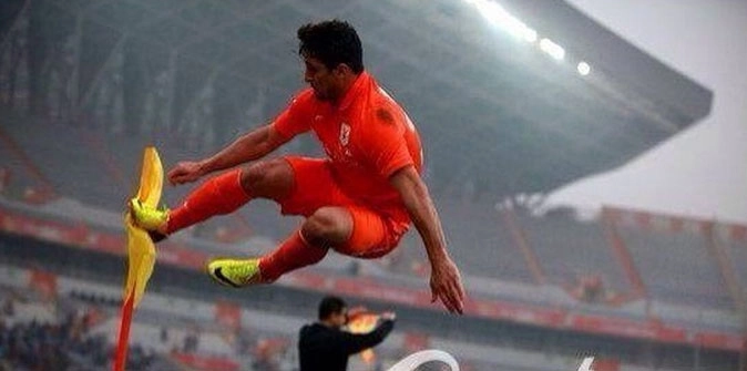 Depois de dar sua primeira entrevista coletiva aos jornalistas, o "Boi Bandido" foi a campo para um amistoso e marcou, de pênalti, um dos gols da vitória por 2 a 1 sobre o Shanghai Shenxin. Logo na sequência, correu em direção à bandeira de escanteio e fez a tradicional comemoração.