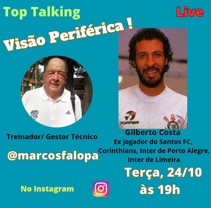 , Gilberto Costa, que foi um volante de muita qualiade, é o convidado desta terça-feira (24), a partir das 19h, da live comandada por Marcos Falopa, coordenador técnico, profissional que acumula um currículo invejável como treinador de diversos clubes e seleções, incluindo trabalhos de instrutor pela Fifa.