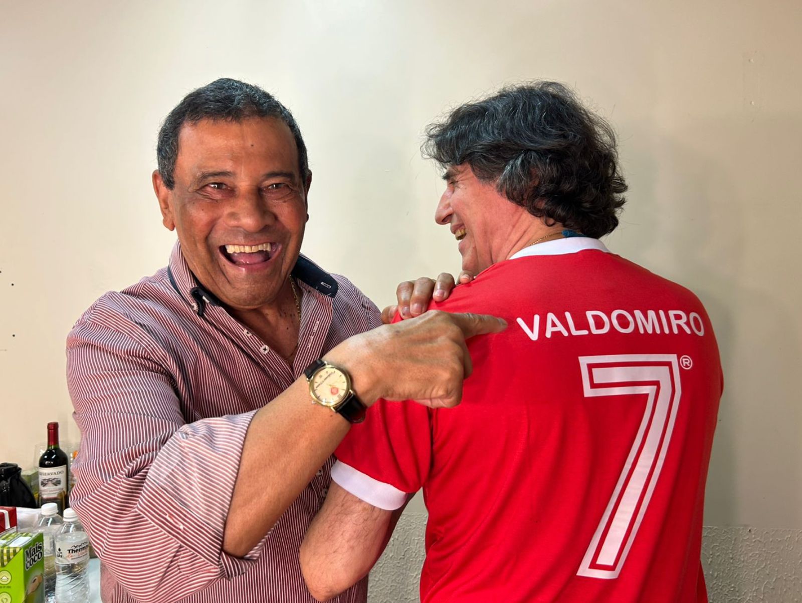 "Valdomiro, além do ídolo que me deu tantas alegrias nos anos 70, é um baita cara, um ser humano simples, simpático e gente boa. Já tínhamos nos encontrado em outros momentos, mas dessa vez foi especial. Kleiton e eu fomos fazer este show em Criciúma e convidamos o Valdomiro. No meio do show anunciei a presença dele, e a plateia veio abaixo numa ovação estrondosa. Foi emocionante. E, para fechar com chave de ouro, nós o recebemos no camarim, e eu ainda ganhei de presente a camisa de 1979 autografada", comentou o emocionado Kledir com exclusividade ao Portal Terceiro Tempo.