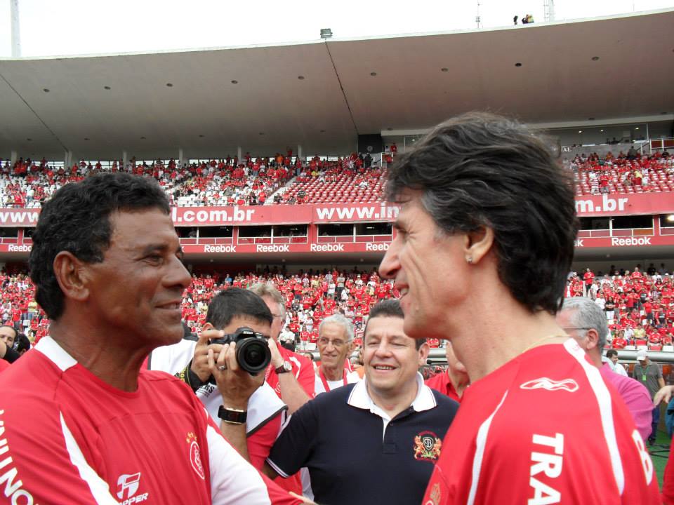 Kleiton, que é gremista, recebeu Valdomiro com muita simpatia e humor, e após abraçar o ídolo do clube rival, fez uma confissão.