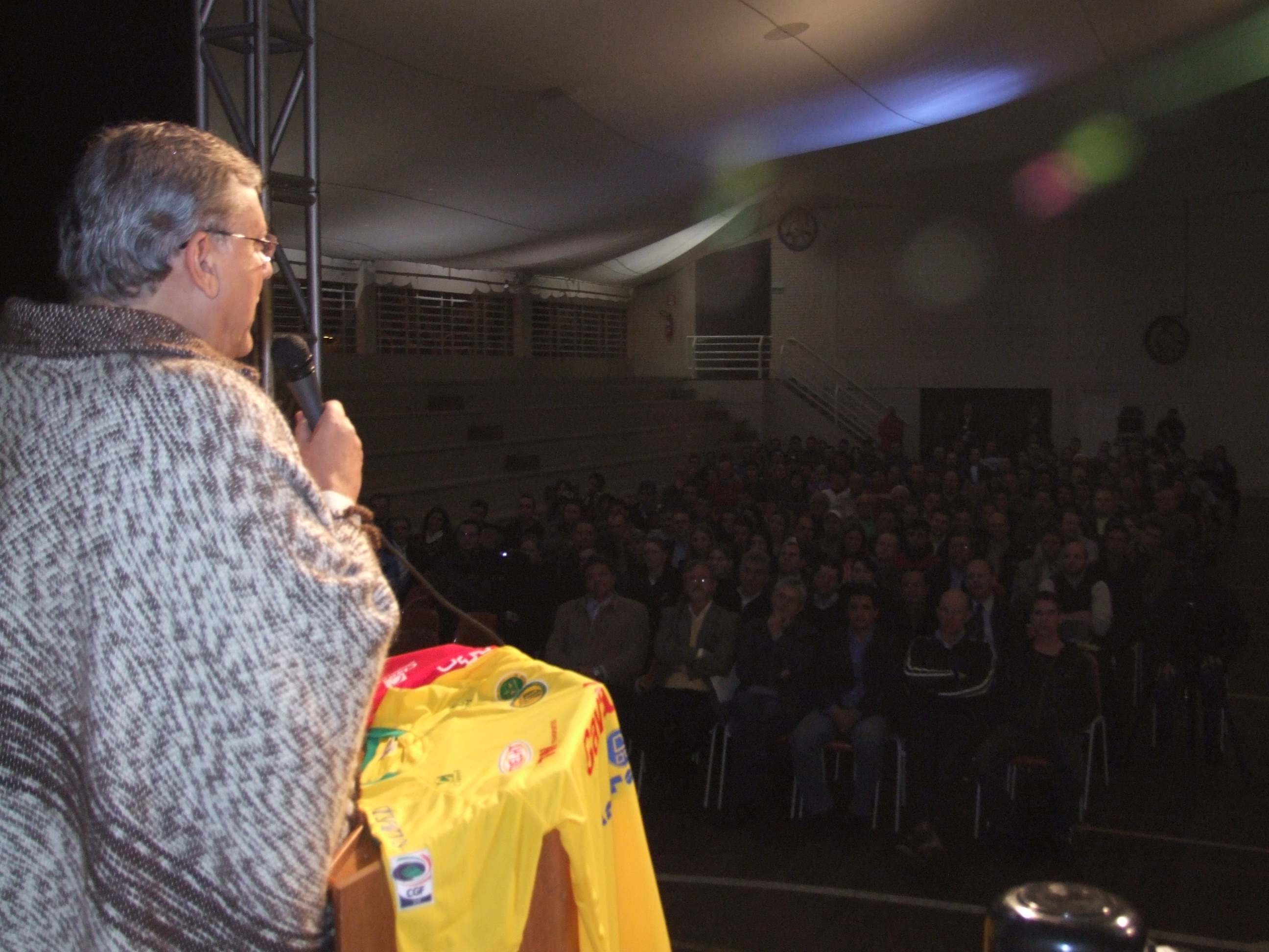 Lá, Milton fez palestra beneficente no ginásio da URI (Universidade Regional Integrada do Alto Uruguai e das Missões), recinto lotado de estudantes, professores e convidados.