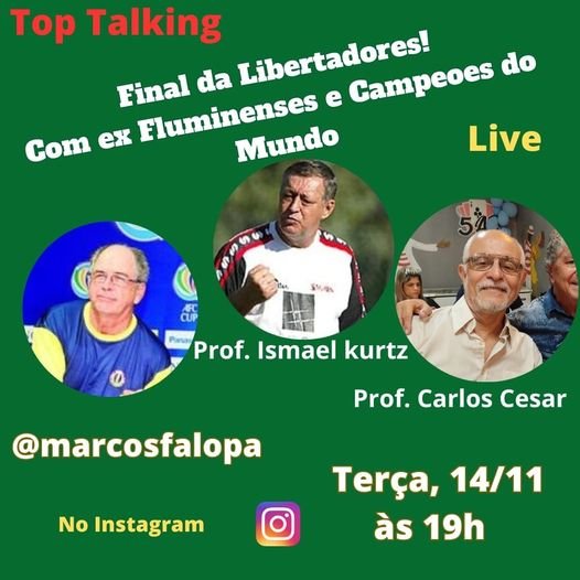 Os professores Ismael Kurtz e Carlos Cesar são os convidados desta terça-feira (14), a partir das 19h, da live comandada por Marcos Falopa, coordenador técnico, profissional que acumula um currículo invejável como treinador de diversos clubes e seleções, incluindo trabalhos de instrutor pela Fifa.