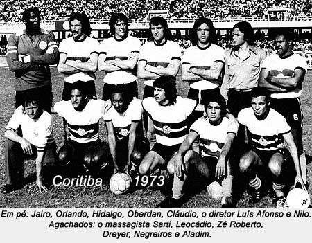 Vejam o Coritiba em 1971 com Pescuma, Hermes, Hidalgo, Célio, Piloto e Nilo em pé e Reinaldinho, Renatinho, Leocádio, Zé Roberto e Rinaldo agachados. Foto enviada ao site por Walter Peres
