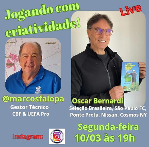 Oscar Bernardi, um dos melhores zagueiros brasileiros em todos os tempos, titular nas Copas de 1978 e 1982 e integrante do elenco na Copa de 1986, é o convidado desta segunda-feira (10), a partir das 19h, da live comandada por Marcos Falopa, coordenador técnico, profissional que acumula um currículo invejável como treinador de diversos clubes e seleções, incluindo trabalhos de instrutor pela Fifa.