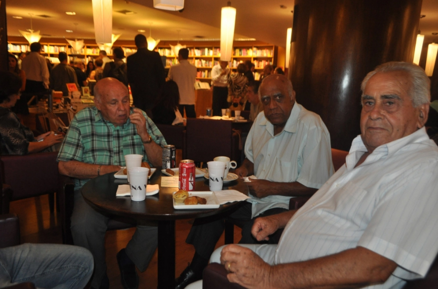 Selecionamos uma foto para abrir nossa seção semanal "Uma foto, uma históra!" e mais algumas outras em que três ex-jogadores do Santos se reencontraram no evento e, juntos tomaram um lanche no espaço contíguo à livraria, no espaço do Viena Delicatessen.
