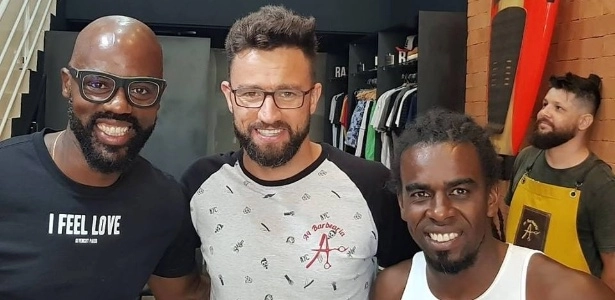 Alex Bruno entre os clientes Grafite e Tinga. Foto: Arquivo PessaoalGrafite se aposenta dos gramados e trabalhará como embaixador do Santa Cruz