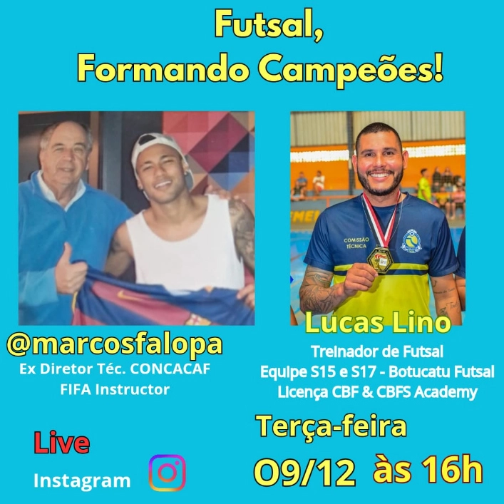 Futsal, revelando craques, será o tema da live de Marcos Falopa com Lucas Lino