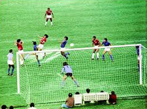 Antes do primeiro gol, uma bola "prensada" entre Nonô e Dorval foi em direção a Milton, na mureta, junto ao alambrado.