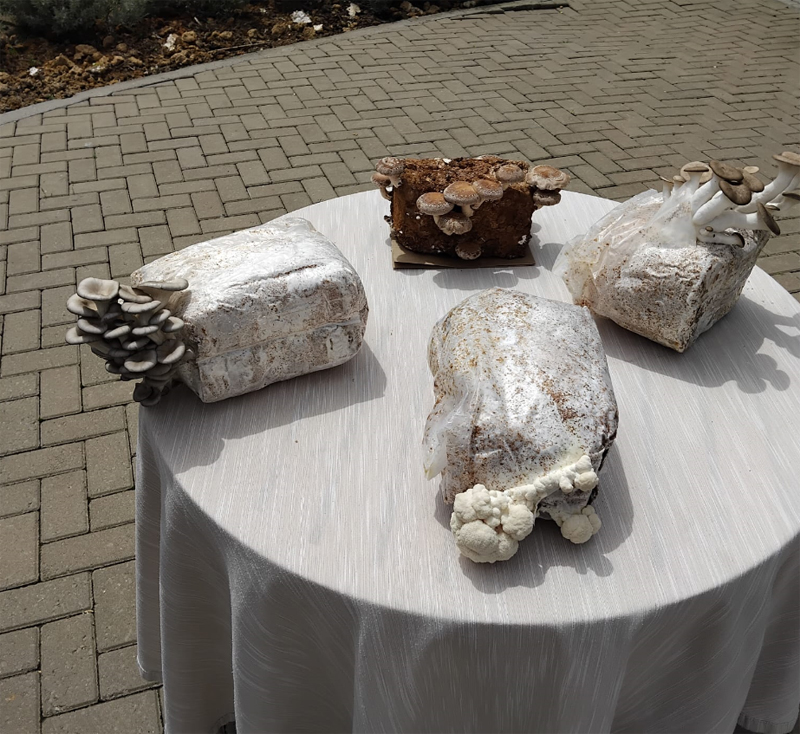 Depois de aproveitada para a fabricação de móveis, a serragem resultante serve de base para a germinação de cogumelos, que no caso da Du Organics, produz as espécies Shitake, Shimeji, Portobello e Juba de Leão.