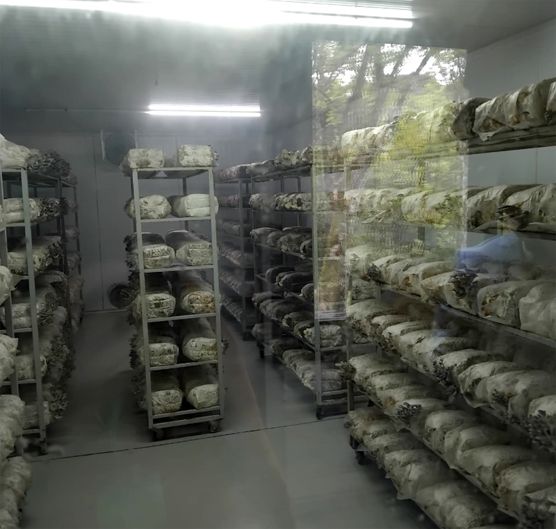 Os troncos da árvore também são utilizados para a germinação dos cogumelos. Os esporos, após serem inoculados nos troncos, são protegidos com uma resina, para evitar contaminação externa. Assim, há duas modalidades na produção dos cogumelos: a mais usual, no caso nos troncos, e aquela feita em maior escala, com a serragem da árvore uva japonese (embalada em material biodegradável) e mantida em estufas, que garante uma produção perene.