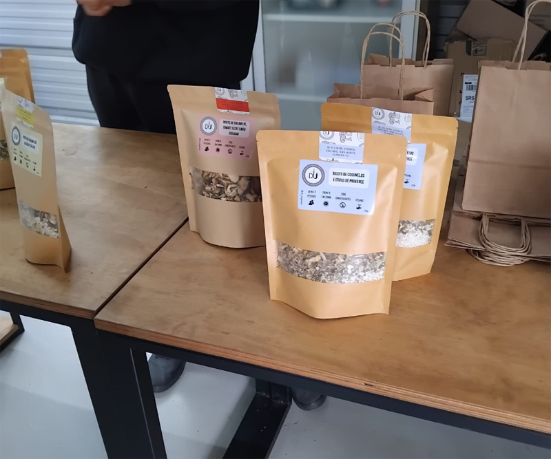 Afora a produção dos cogumelos in natura, comercializado em bandejas, Lucas Kehl teve a ideia de produzir risotos com os cogumelos que produz, além de ervas e frutos.